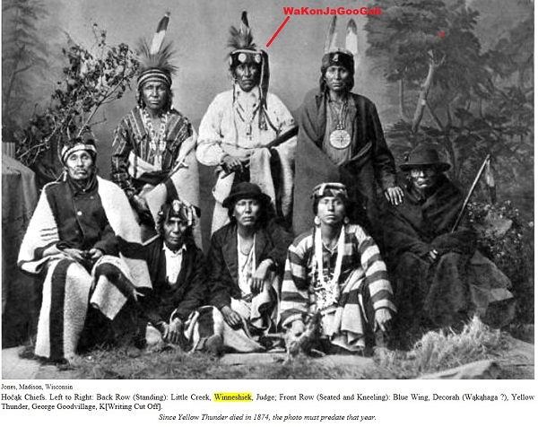 Wakaja Gu had five sons and one daughter. One of his sons was my Great Grandfather WaKonJaGooGah, or "Flying Low Cloud." His Christian name was John Winneshiek. WaKonJaGooGah (John Winneshiek) died at the age of 98 on July 18, 1931.